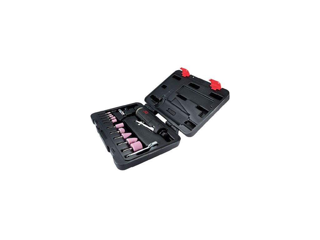 Stopková vzduchová bruska v kufříku s příslušenstvím.