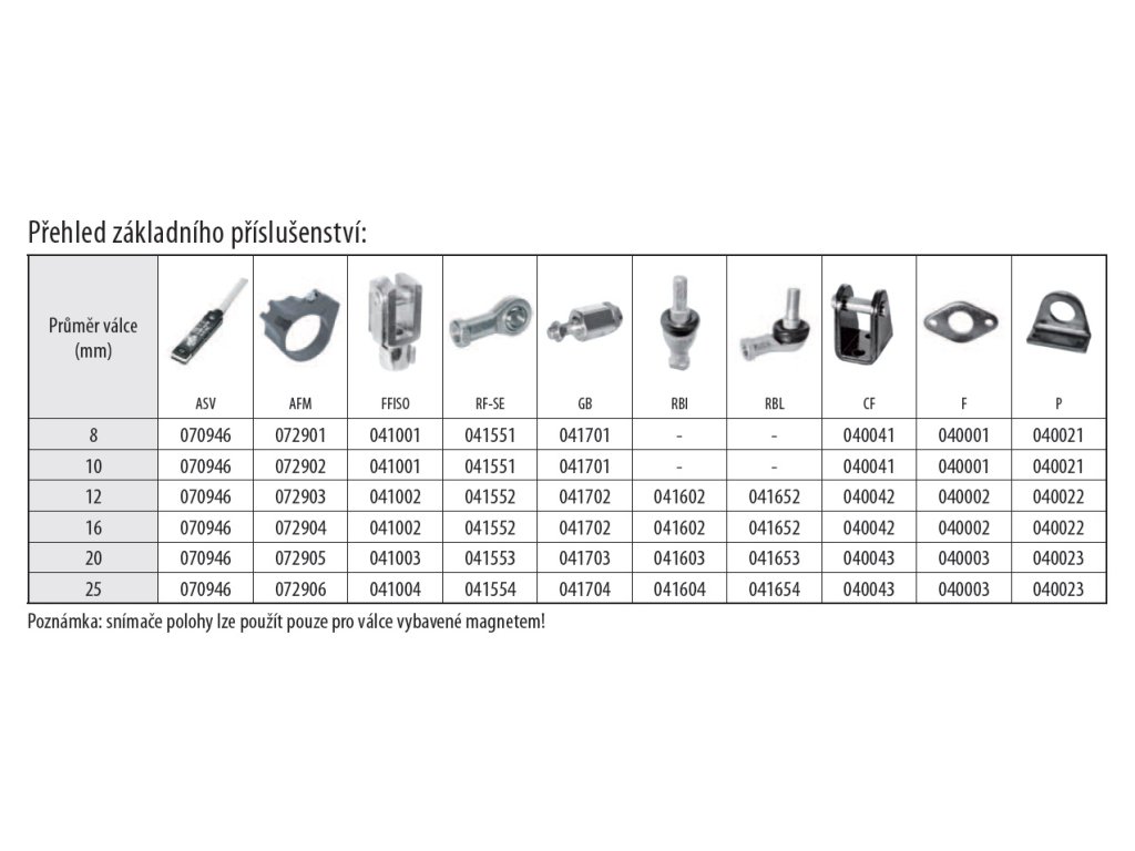 • pneumatické válce s kruhovým tvarem s rozměry dle normy ISO 6432