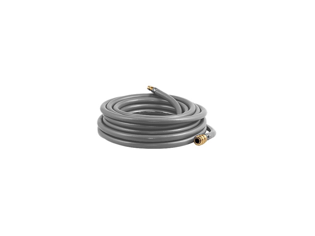Extrémně elastická hadice pro vedení stlačeného vzduchu, odolná kondenzátu pro průmyslové aplikace s vysokými nároky na ohyb a flexibilitu osazená standardní rychlospojkou a vsuvkou DN7,2. Dvouvrstvé provedení z měkčeného PVC, vyztužená textilním opletem z vysocepevnostního polyesterového vlákna. Černá duše se šedým pláštěm.