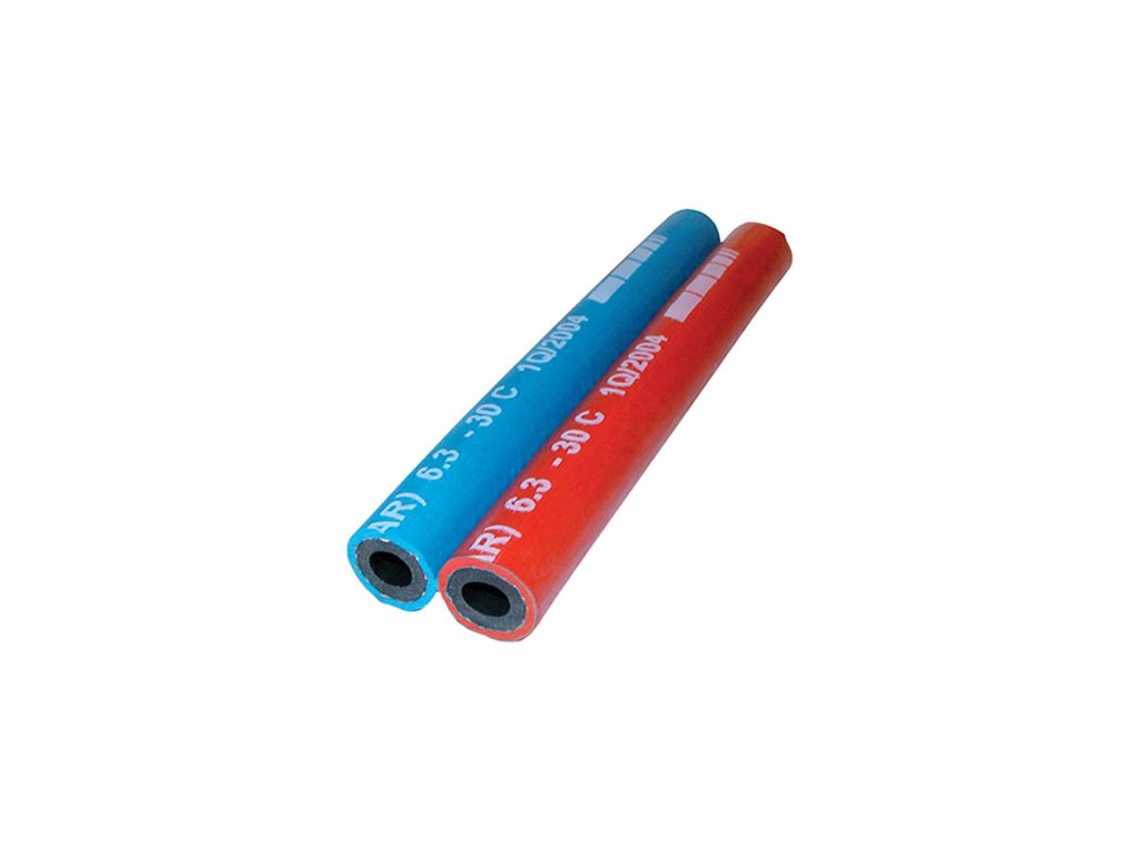 Svářecí hadice určené pro společnou dopravu kyslíku a acetylenu, zemního plynu, svítiplynu a oxidu uhličitého, argonu a dusíku. Černé duše SBR s modrým a červeným SBR/NR plášťem a jedním textilním opletem. Materiálové provedení nevhodné pro LPG, MPS a CNG.