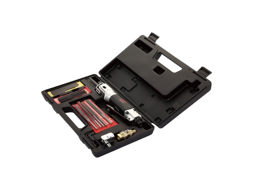 Součástí sady je pilka, 6 ks plátků s 24 zuby, 6 ks plátků s 32 zuby, 5 ks pilníků, imbusové klíče, 360°otočný přívod vzduchu a mini-olejovač.