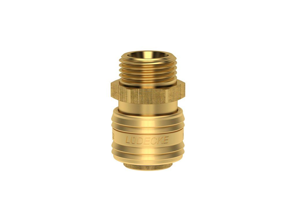 Rychlospojka Lüdecke DN5,5 s americkým profilem dle norem ISO 6150 B a US Mil. Spec. 4109 s vnějším závitem. Jednostranně uzavíratelné provedení určené zejména pro stlačený vzduch, vodu a jiná média v oblasti pneumatické, měřicí, regulační a řídicí techniky. Provedení z mosazi MS 58 s prvky z nerezové oceli a NBR.