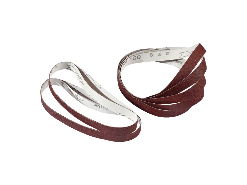 Sada 10 ks brusných pásů o rozměru 10x330 mm s hrubostí 100 zrn/cm2.