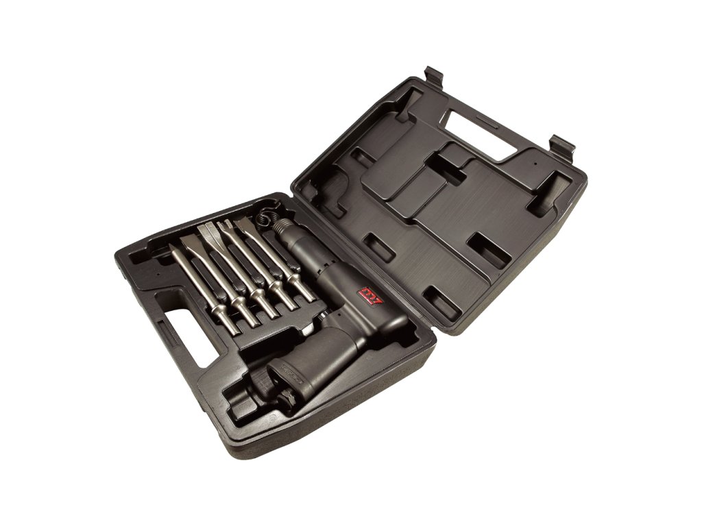 Součástí sady je sekací kladivo, 5 kusů sekáčů s různými tvary a jedna upínací pružina.