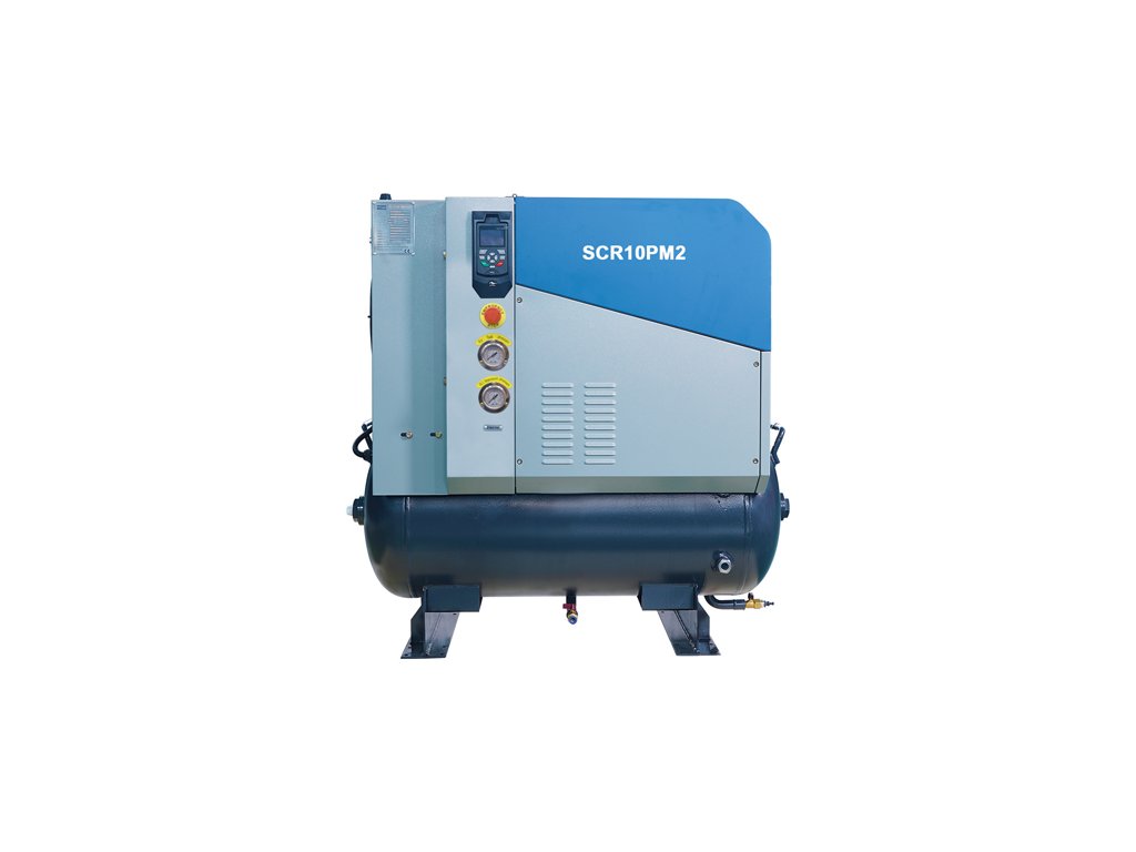 Šroubový kompresor SCR-7,5/10PM2, příkon motoru 7,5 kW, dodávaný tlak 10 bar, objemový výkon 57 Nm3/h