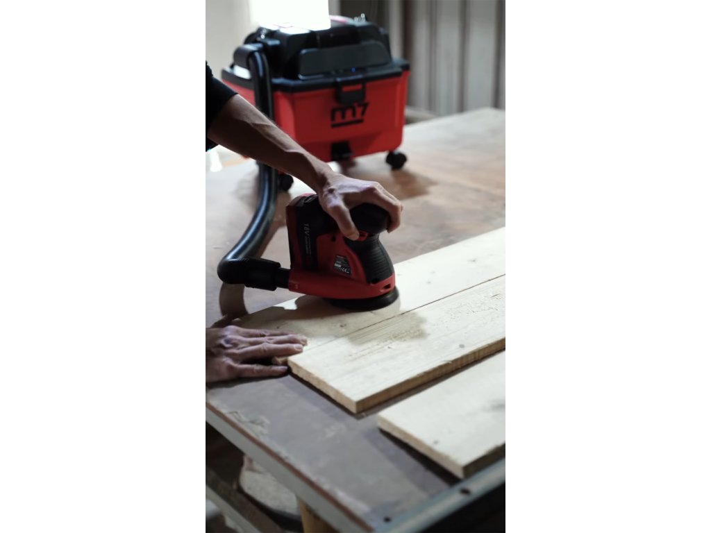 Vysavač lze snadno propojit s nářadím – například bruskou – a efektivně odsávat prach přímo při práci.